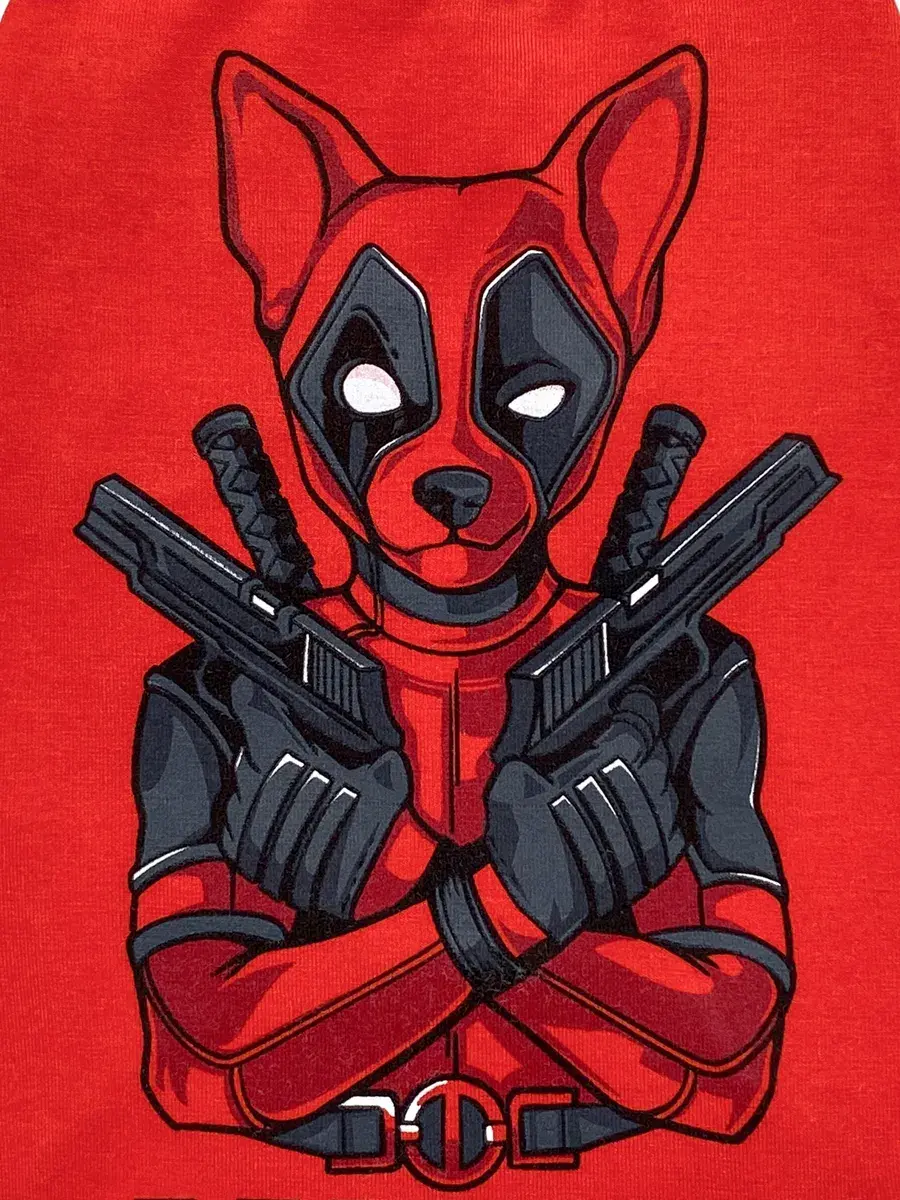 Одежда для собак мелких пород с принтом Dogpool для собак мелких пород из высококачественного хлопка от бренда ALFADOG – это не просто модный аксессуар, а идеальное решение для тех, кто ценит стиль и комфорт своего пушистого друга. Наши футболки Альфадог разработаны с особым вниманием к нуждам маленьких собак, обеспечивая свободу движений и удобство в носке.
